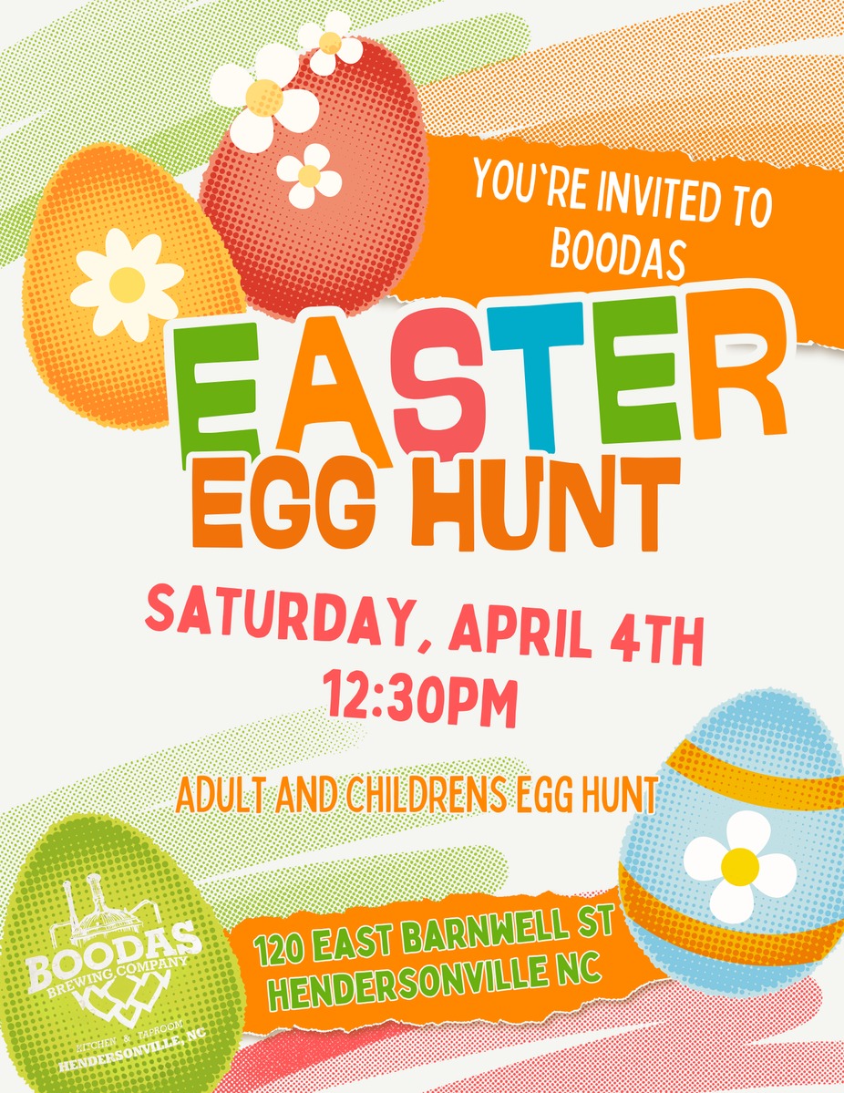 Bring the family to participate in Boodas 2nd annual Easter egg hunt! We will have plenty of eggs for the kids as well as special eggs for the adults who would like to participate!