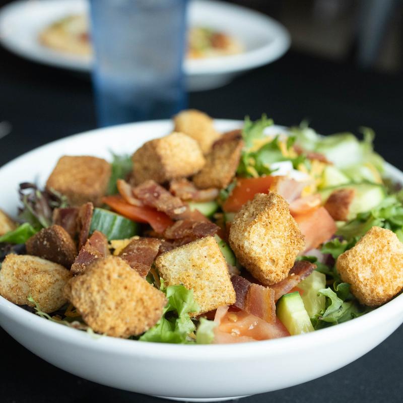 Mixed greens, cucumber, tomato, red onion, cheddar, bacon, croutons • Add: Short Rib +$7.00, Chicken Tenders +$6.00, Chicken +$5.00, Black Bean Burger or Beef Patty +$3.00, Blue Cheese Crumble +$2.00